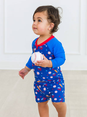 RuggedButts - Baby Boys Play Ball Long Sleeve One Piece Rash Guard Swimsuit
