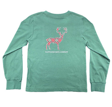 Saltwater Boys Company - Boys Plaid Deer graphic tee LS- Green