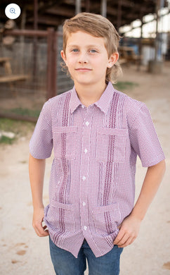Guayabera, Game Day, Wave Check SS Shirt-Blue Quail