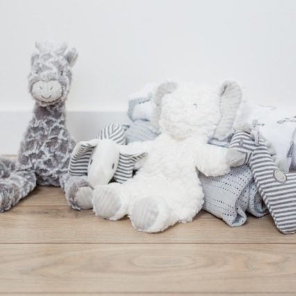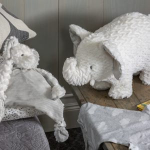 Today’s modern parent has embraced neutral color schemes for baby’s nursery. Afrique Boutique features neutral grey and white fabrics in textures we love. New for 2017 are several more toys in white and a lion character that warms up with an earthy tan. The expanded palette makes Afrique Boutique work even better with wood floors and accessories.
