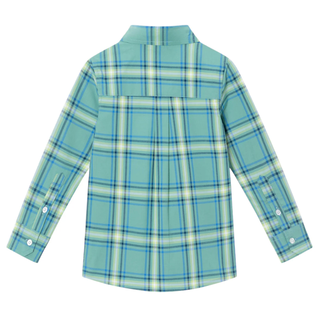 - Bold Plaid Pattern: Featuring a striking green plaid design, this shirt brings a pop of color to your child's outfit, perfect for making a stylish statement.
