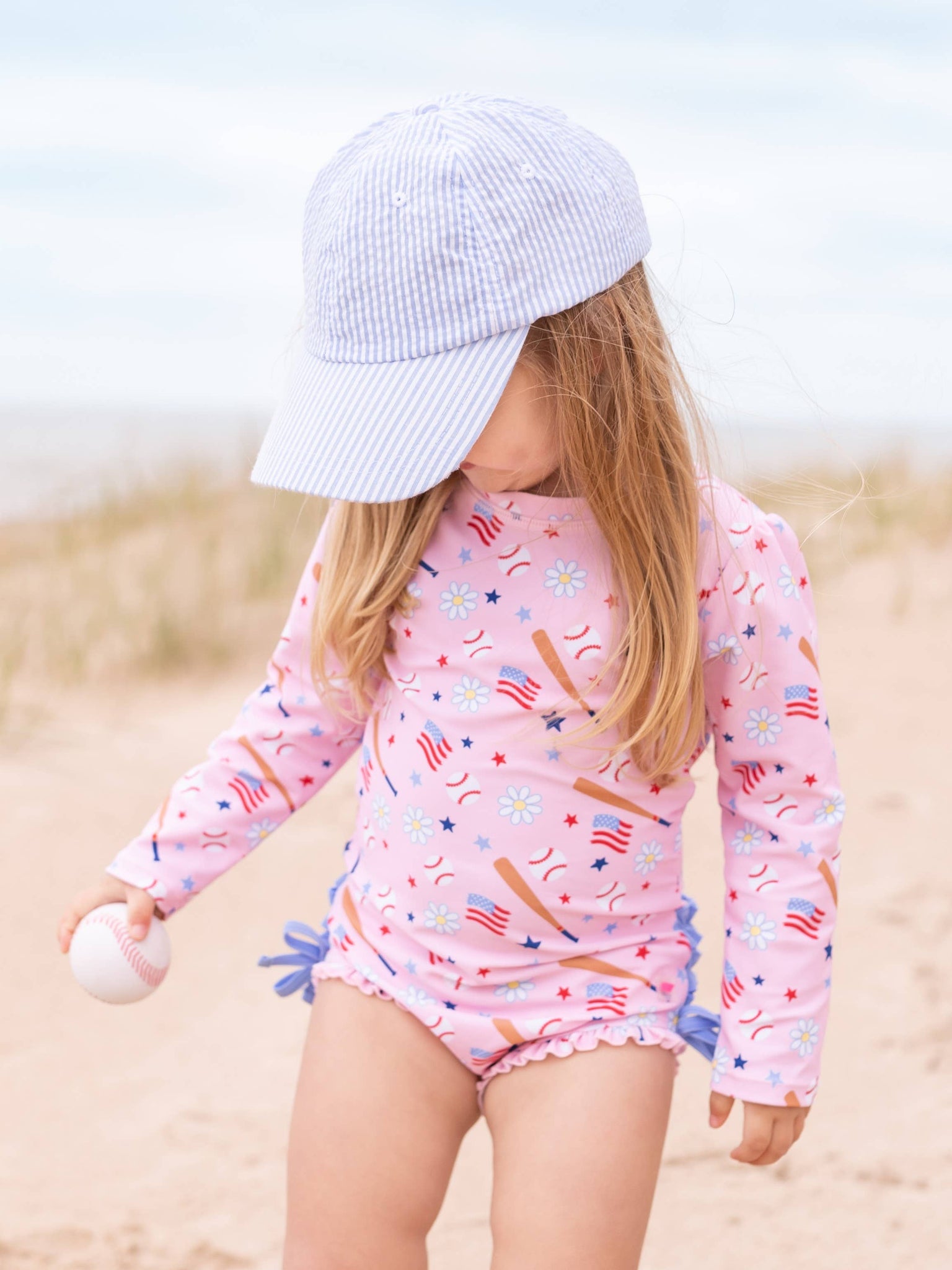 This classic baseball cap is a staple for sunny day outfits. Create a family coordinating look with the matching adult version!