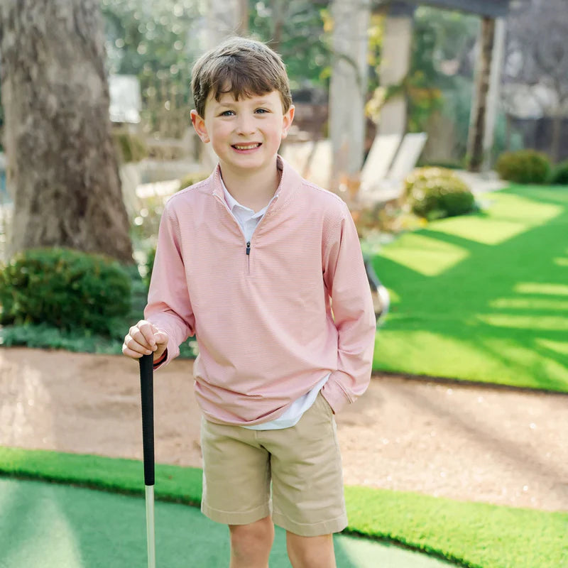 Boys' quarter zip performance pullover. Made from 92% polyester, 8% Elastane. Moisture-wicking and quick-drying.