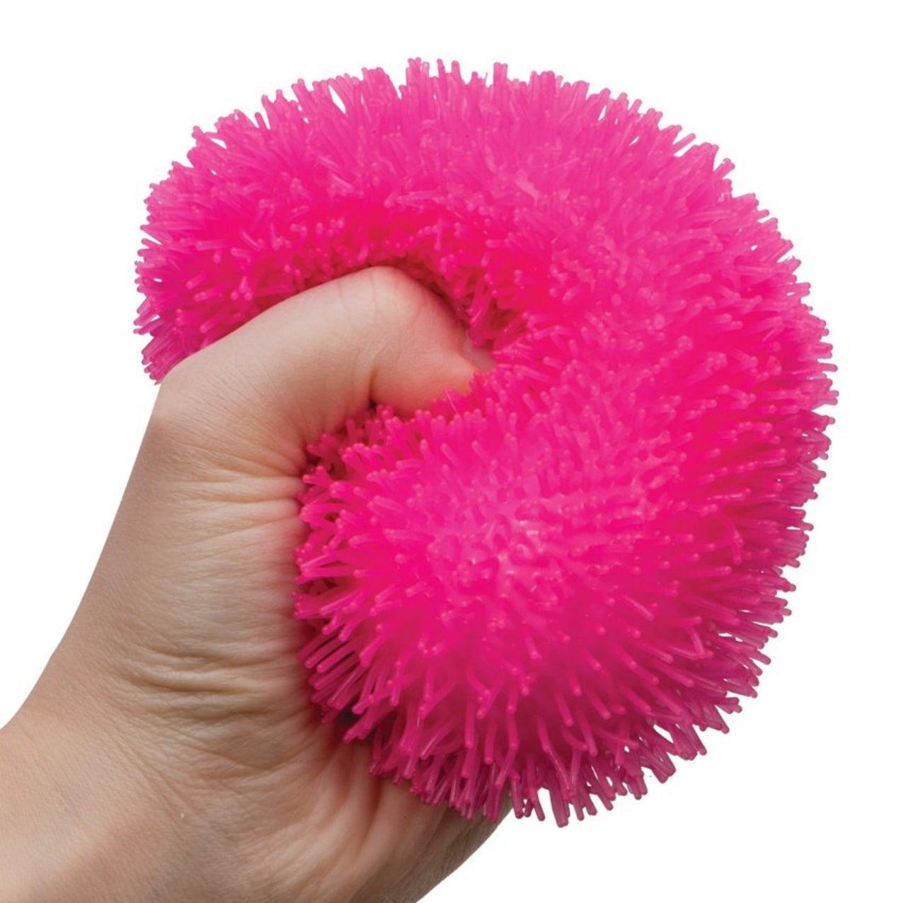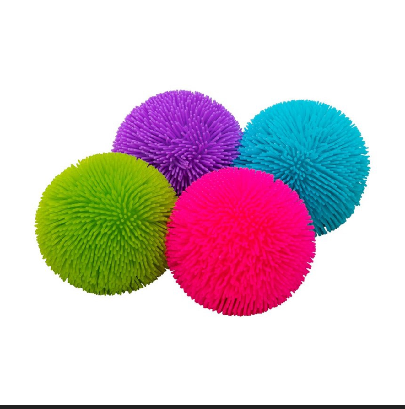 Soft, shaggy surface for a satisfying tactile experience • Suitable for stress relief, anxiety reduction, and sensory play • Available in assorted colors including pink, purple, teal, and lime green • Safe, non-toxic material • Ideal for ages 3 and up